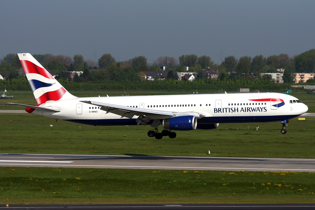 British B767-300 G-BNWZ bei der Landung auf der 05R in DUS / EDDL / Düsseldorf am 03.05.2008