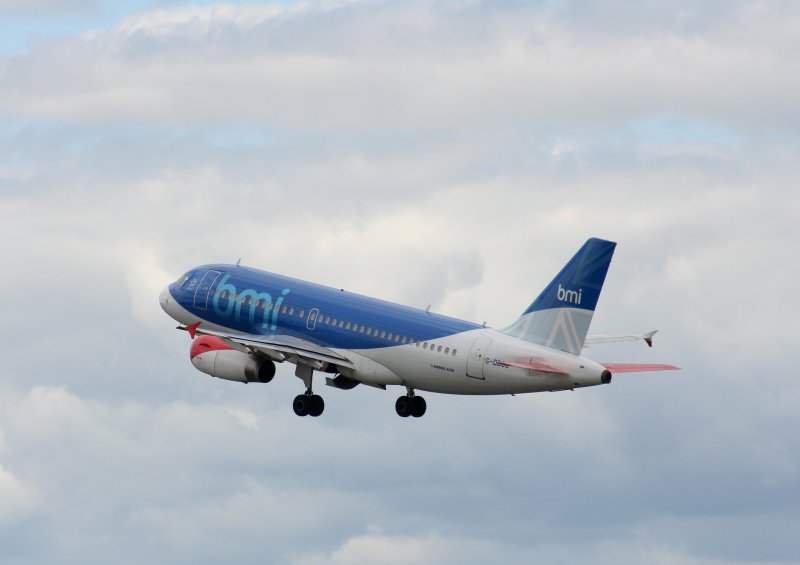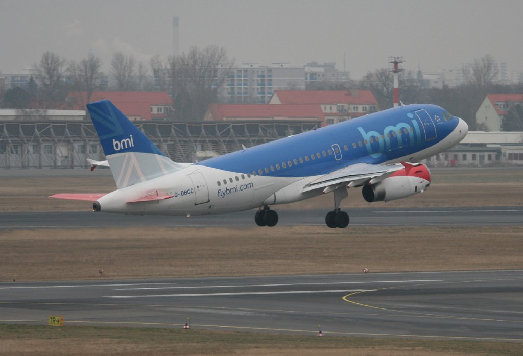 British Midland (BMI) A 319-131 G-DBCC beim Start in Berlin-Tegel am 26.07.2009