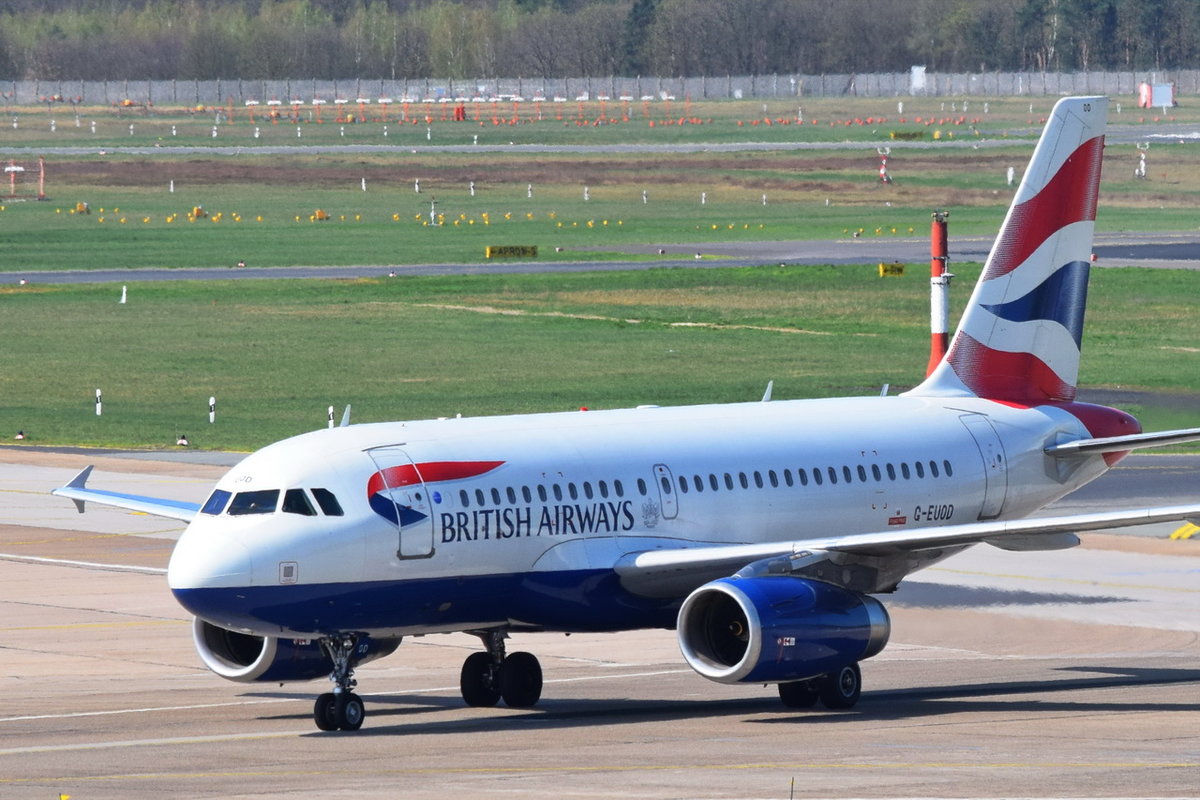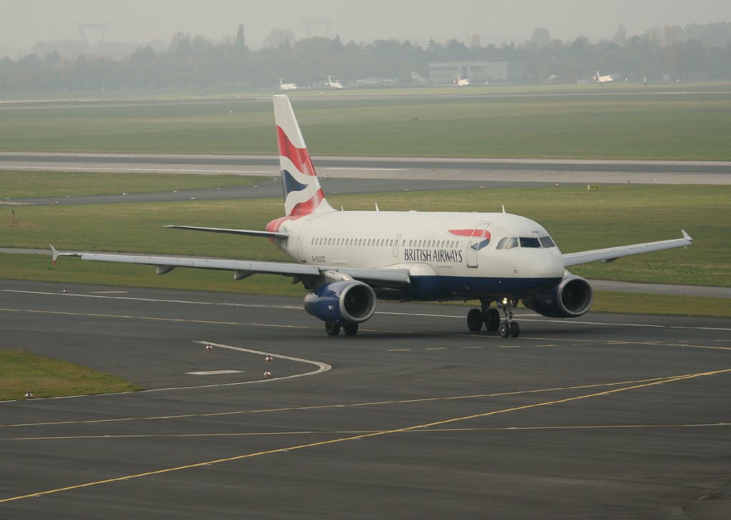 British Airways A 319-131 G-EUOD auf dem Weg zum Start in Düsseldorf am 31.10.2011
