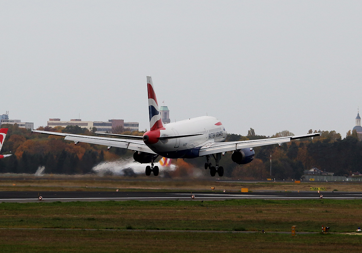 British Airways Airbus A320-232 (G-EUPP) landet am 24.04.14 in Frankfurt