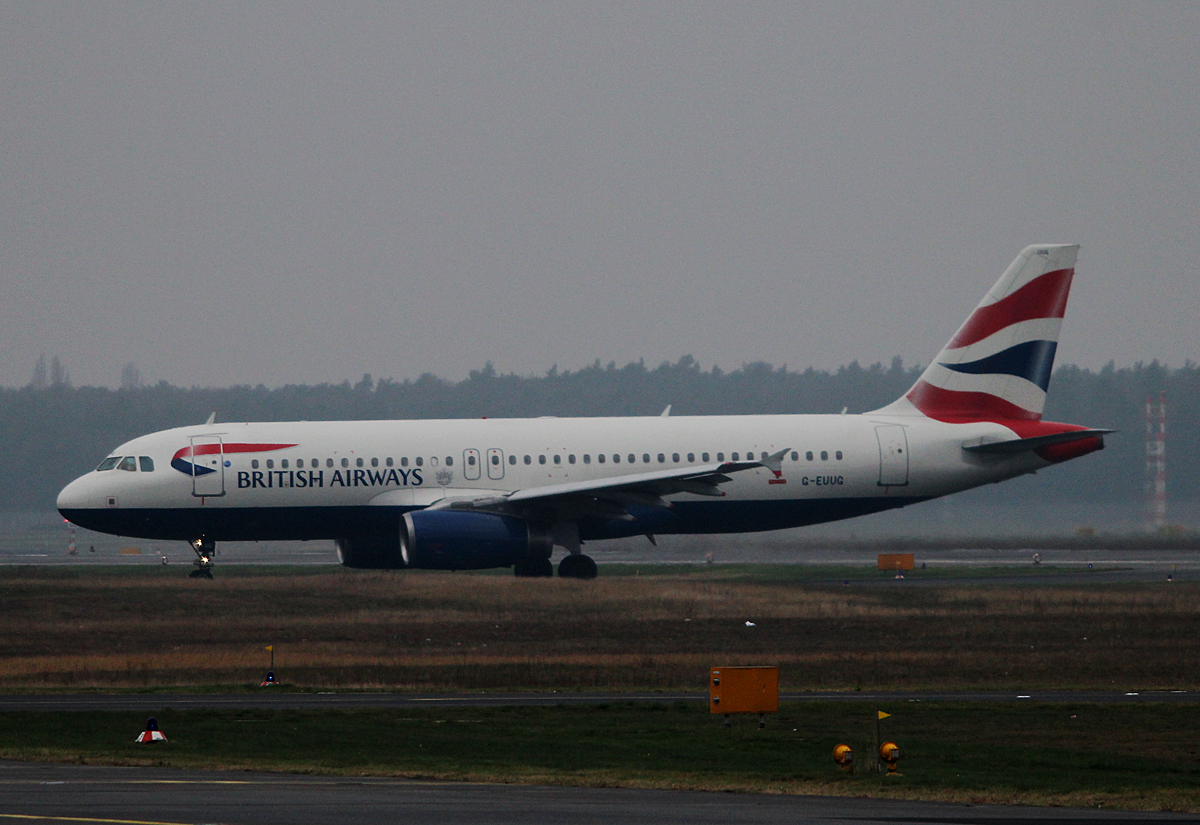 British Airways A 320-232 G-EUUG bei der Ankunft in Berlin-Tegel am 29.11.2014