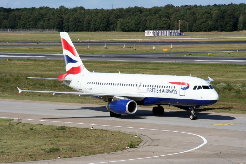 British Airways A 320-232 G-EUUG bei der Ankunft auf dem Flughafen Berlin-Tegel am 12.09.2009