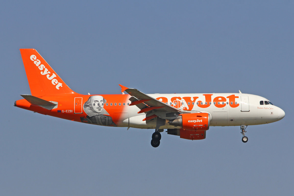 easyJet, G-EZBI, Airbus A319-111, 9. August 2014, GVA Genève, Switzerland. Mit Sonderbemalung: "William Shakespeare, Romeo Alpha Juliet".