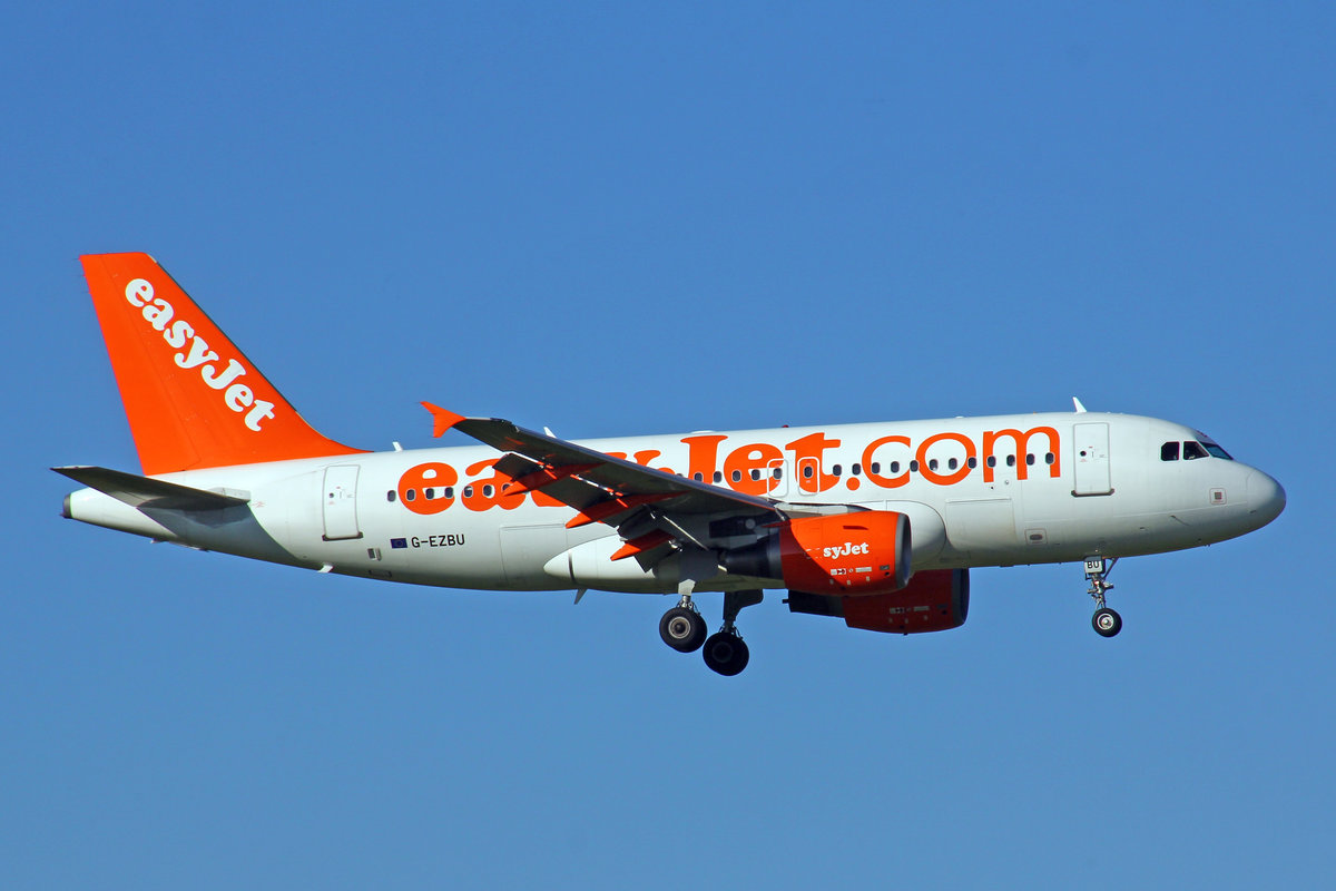 easyJet, G-EZBU, Airbus A319-111, msn: 3118, 21.Februar 2019, ZRH Zürich, Switzerland.