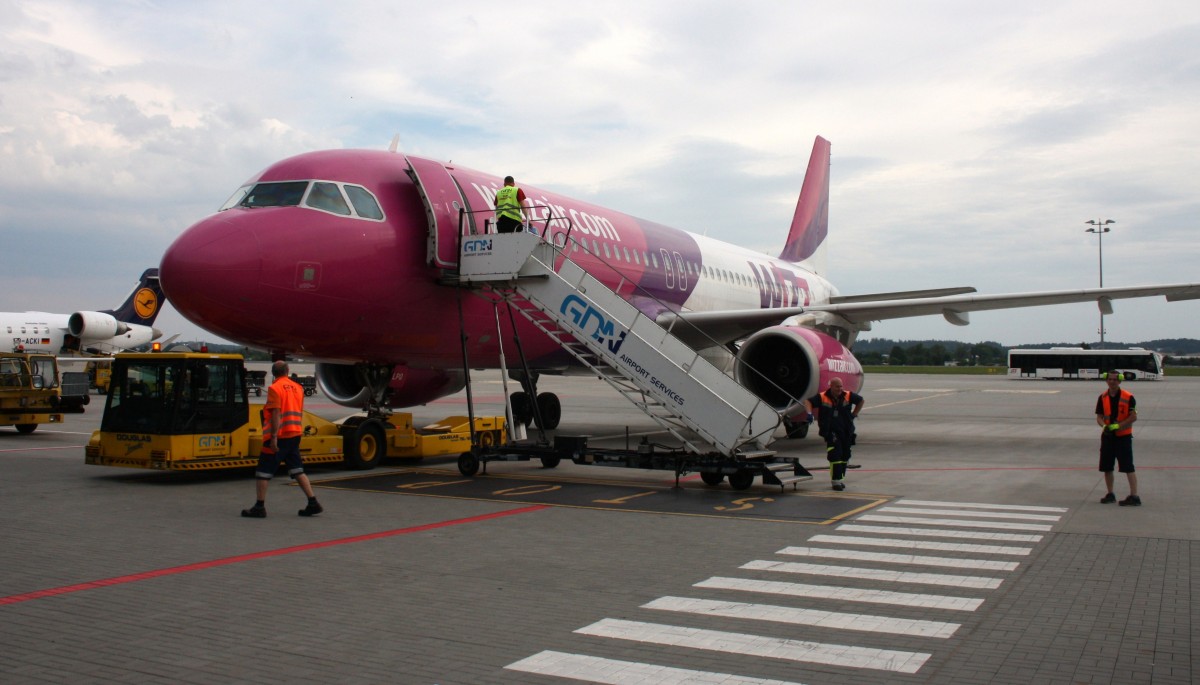 Der Wizzair Airbus A320 HA-LPO am 28.08.16 nach der Landung in Hamburg Fuhlsbüttel.