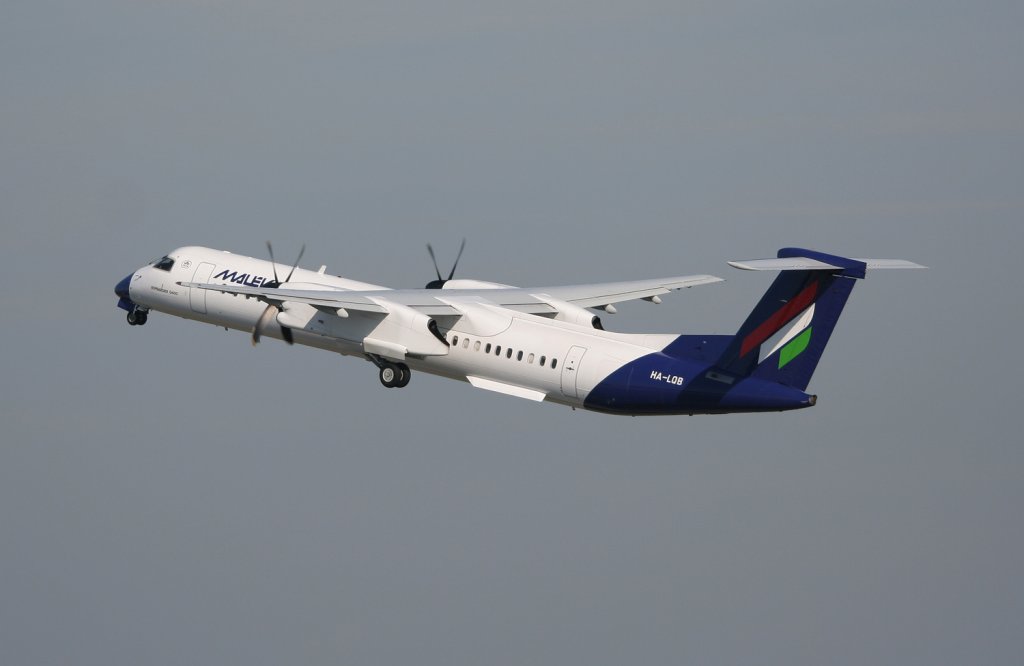 Malev De Havilland Canada DHC-8-402Q HA-LQB beim Start in Berlin-Tegel am 25.09.2011