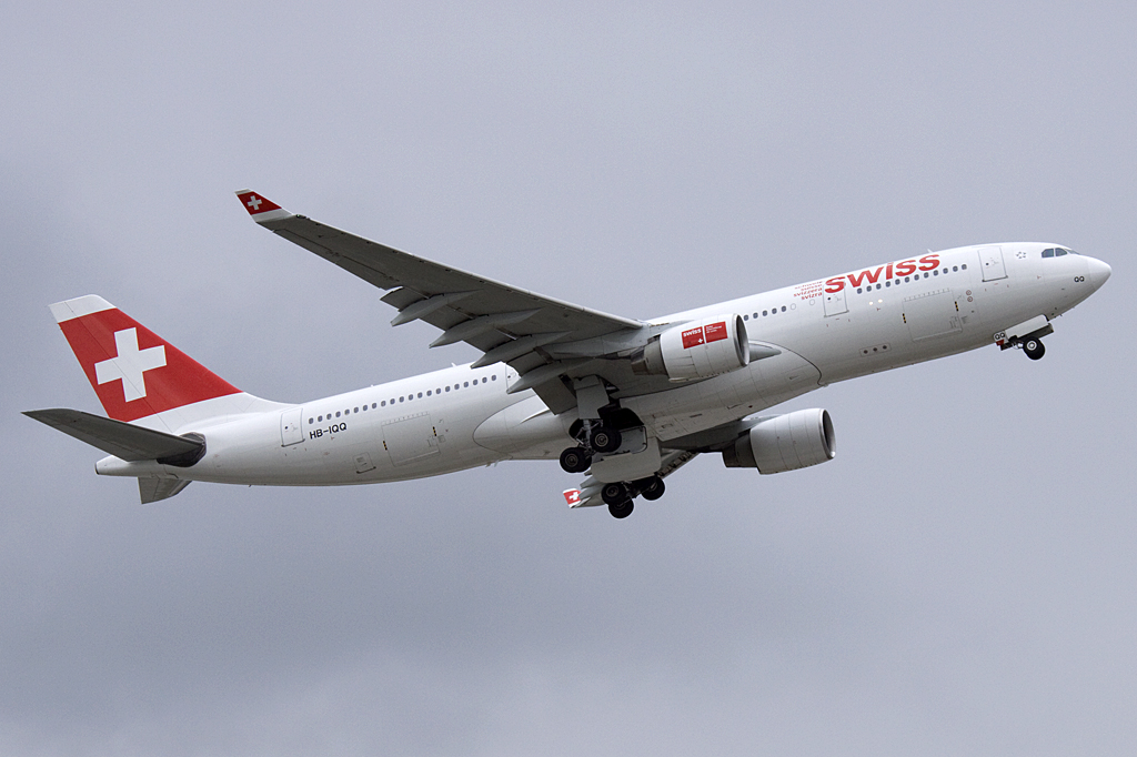 Swiss International Air Lines, HB-IQQ, Airbus A330-223. Elegant hebt der Airbus von der Startbahn 16 ab. Im Hintergrund ist das Gates E zu sehen. 5.4.2007 Jürgen Walter