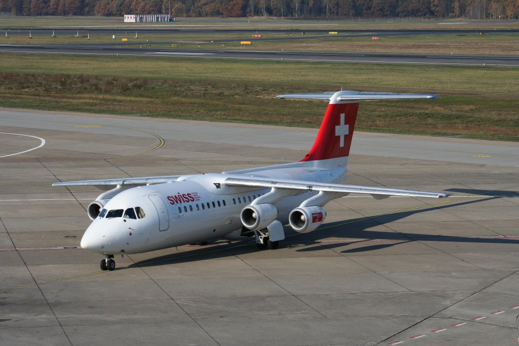 Swiss Avro Regjet RJ100 HB-IYW bei der Ankunft auf dem Flughafen Berlin-Tegel am 31.10.2009