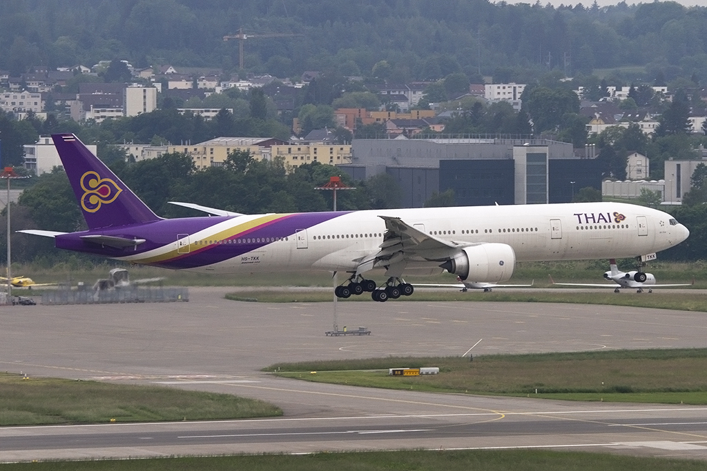 Thai Airways, HS-TKK, Boeing B777-3ALER, msn: 41520/1030, "Philavan / พิลาวัณย์", 01.Mai 2025, ZRH Zürich, Switzerland.