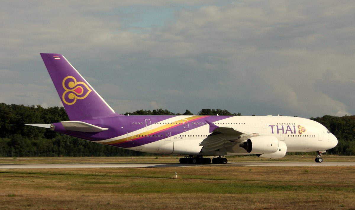 Airbus A380-841 HS-TUD von Thai Airways landet am 22.06.2013 in Frankfurt.