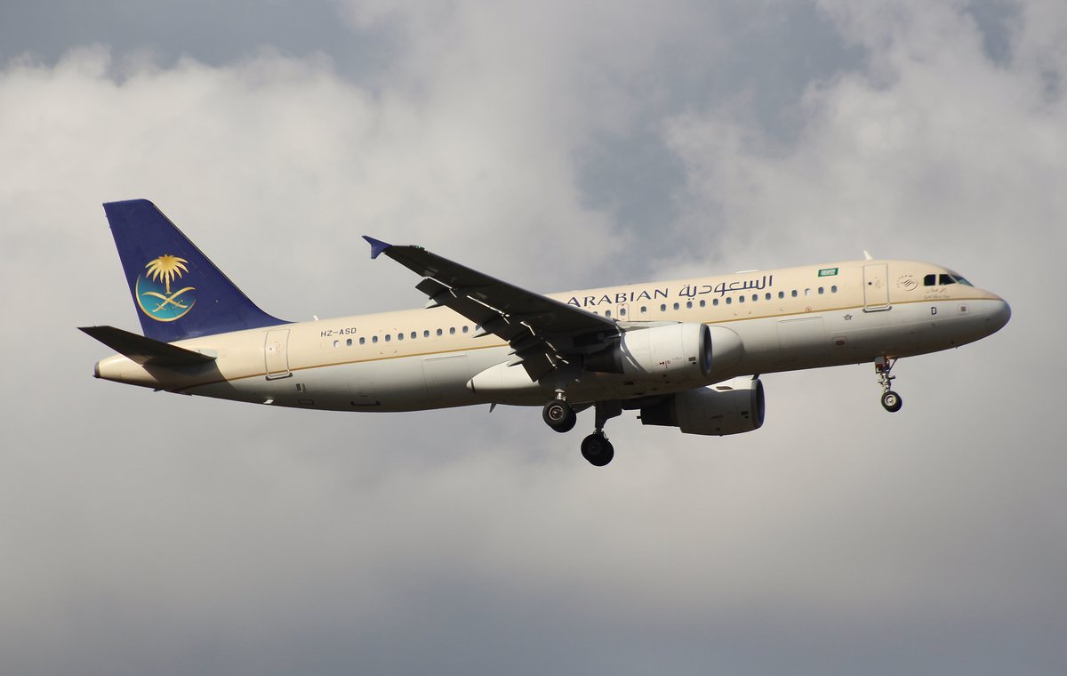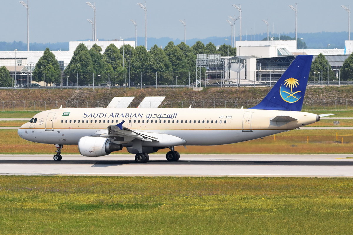 Saudi Arabian Airlines A 320-214 HZ-ASD bei der Landung in Frankfurt am Main am 16.08.2012
