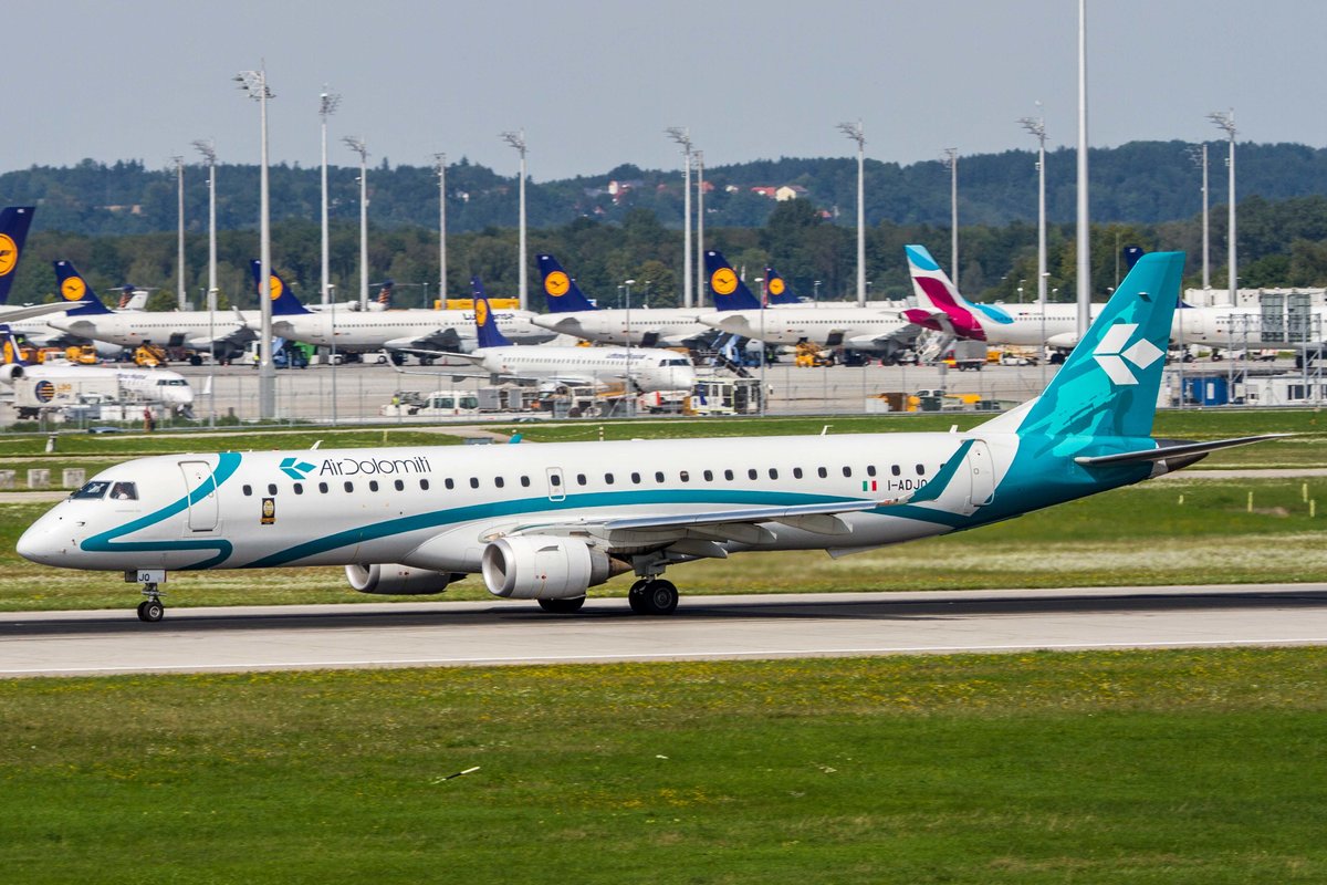 Air Dolomiti, I-ADJQ, Embraer ERJ-195LR, msn: 19000587, "Ernani Di Guiseppe Verdi", 10.September 2022, MUC München, Germany.