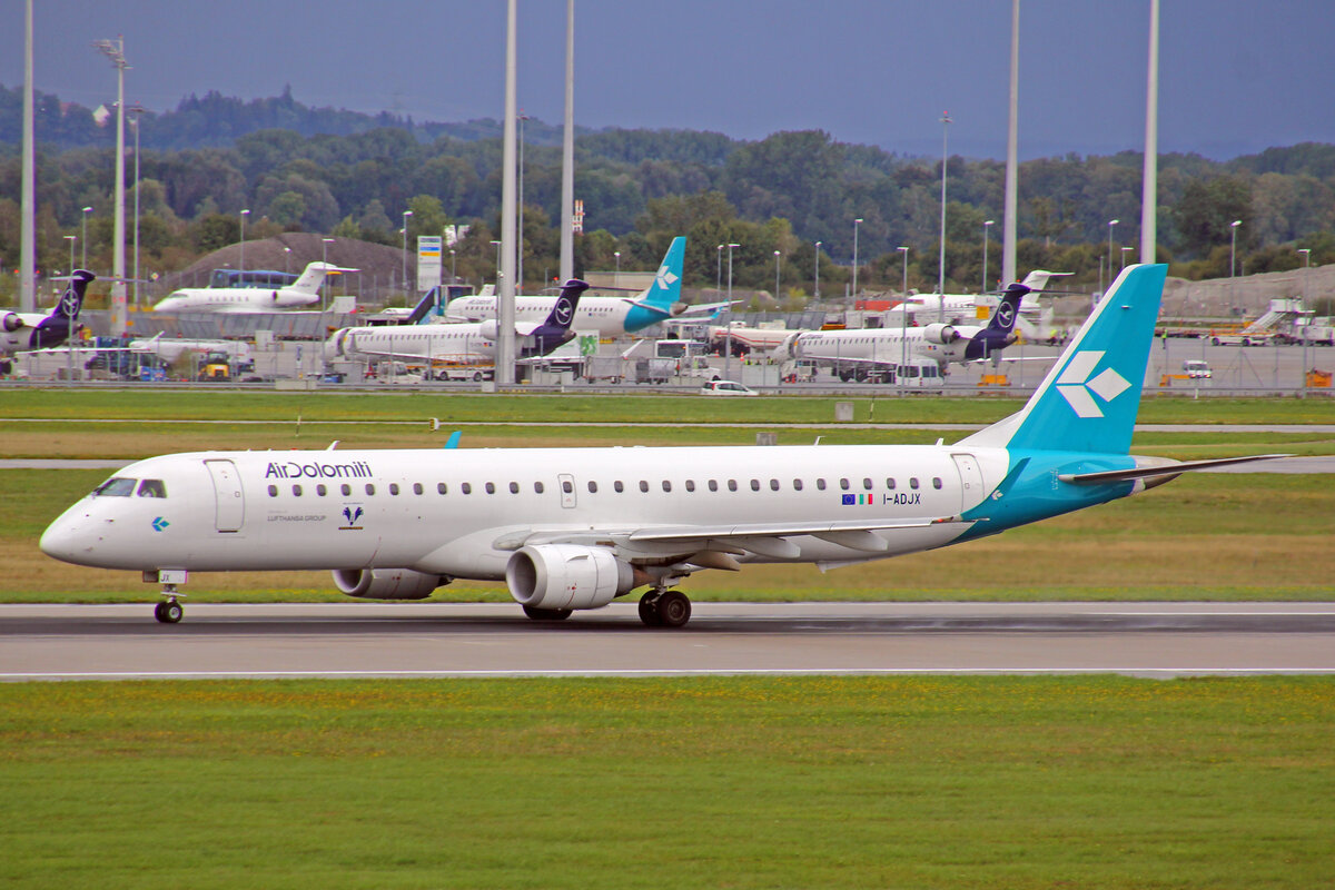 Air Dolomiti, I-ADJX, Embraer Emb-195LR, msn: 19000305, 10.September 2022, MUC München, Germany.