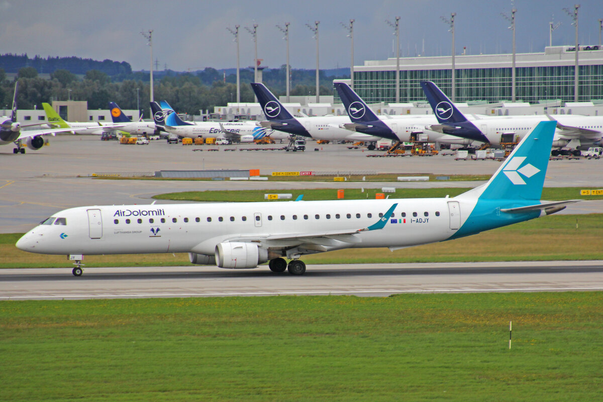 Air Dolomiti, I-ADJY, Embraer ERJ-195LR, msn: 19000300, 11.September 2022, MUC München, Germany.
