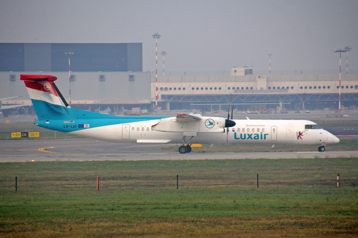 Luxair, LX-LGF, Bombardier DHC-8 402, msn: 4349, 16.Oktober 2018, MXP Milano-Malpensa, Italy.