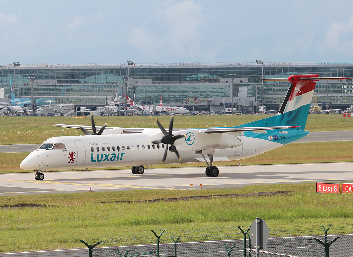 Luxair De Havilland Canada DHC-8 (LX-LGN) in Frankfurt am Main Flughafen am 23.05.15 von einen Planespotterpunkt aus fotografiert