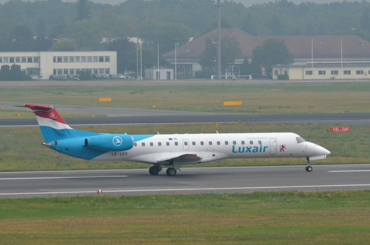 Luxair Embraer ERJ-145LU LX-LGX bei der Ankunft in Berlin-Tegel am 22.08.2012