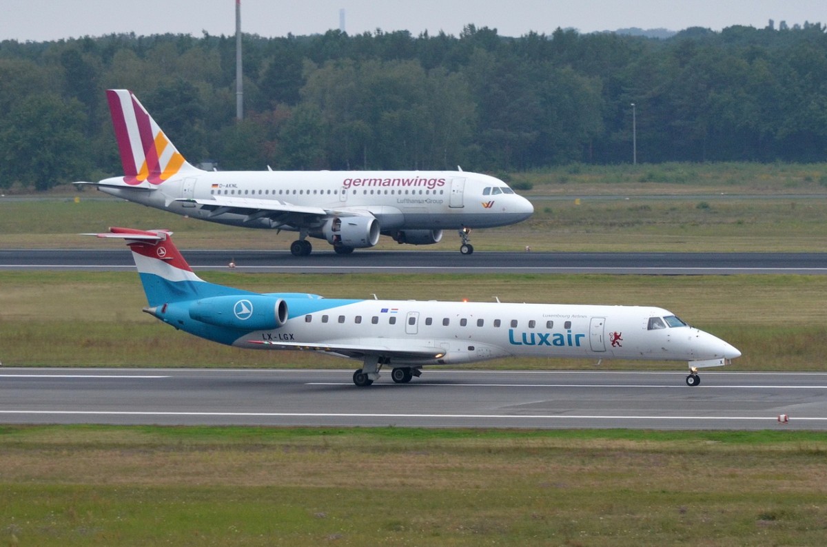 Luxair Embraer ERJ-145 LX-LGX kurz nach dem Start in Berlin-Tegel am 17.09.2011
