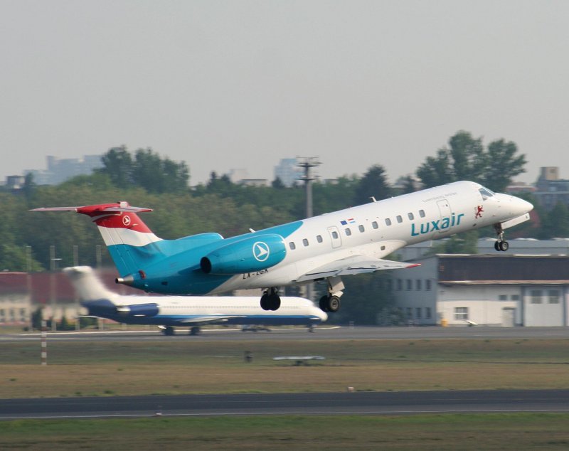 Luxair Embraer ERJ-145LU LX-LGX beim Start in Berlin-Tegel am 30.04.2009