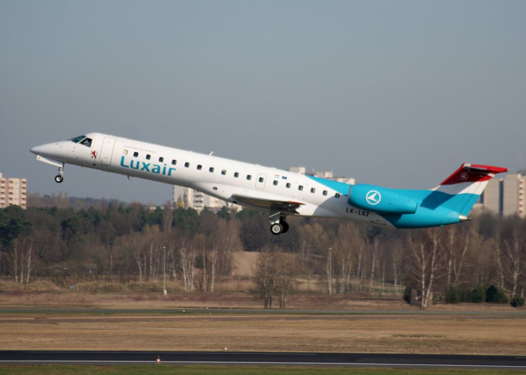 Luxair Embraer ERJ-145LU LX-LGZ beim Start in Berlin-Tegel am 01.10.2011