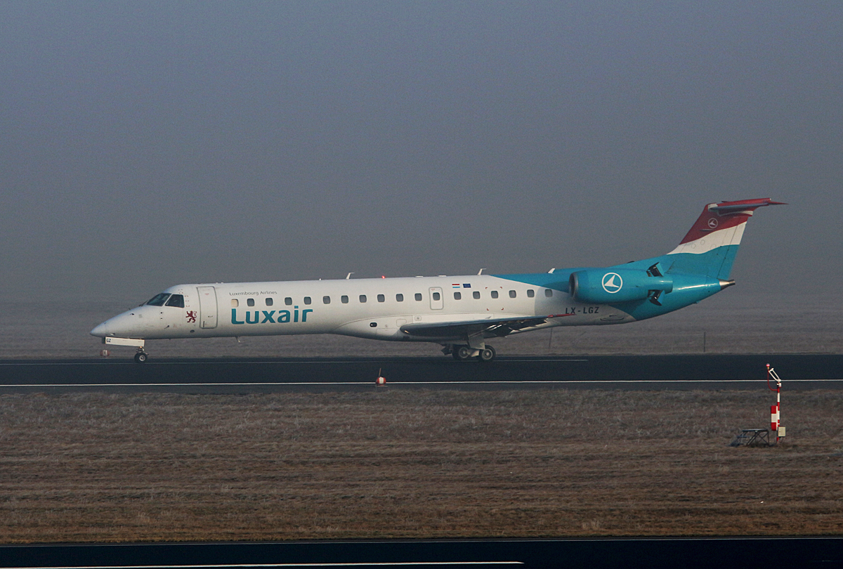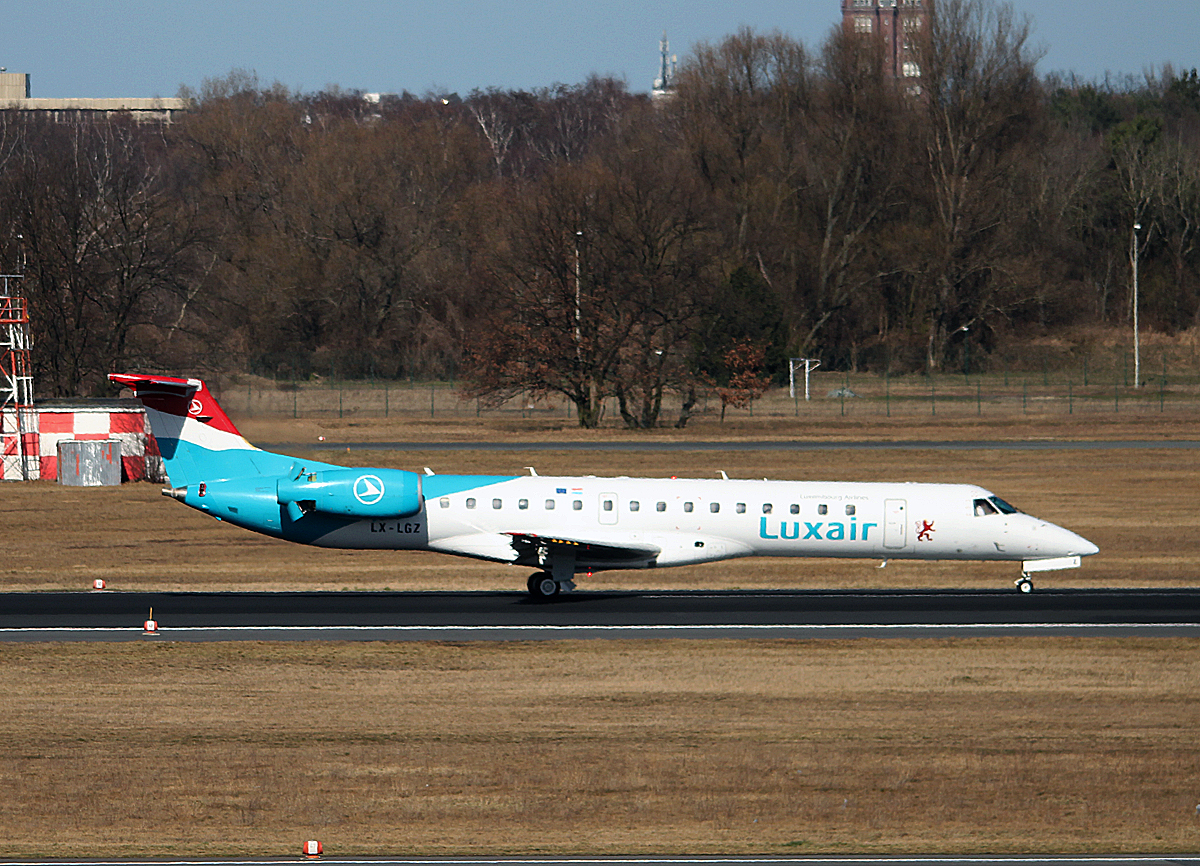 Luxair ERJ-145LU LX-LGZ nach der Landung in Berlin-Tegel am 08.03.2014
