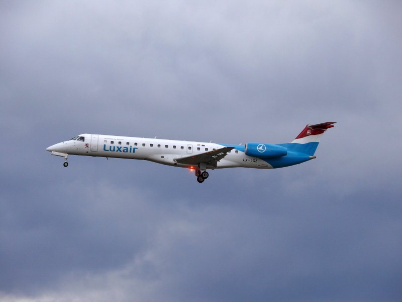 LX-LGZ Luxair Embraer ERJ-145LU  beim Landeanflug auf München am 16.05.2016