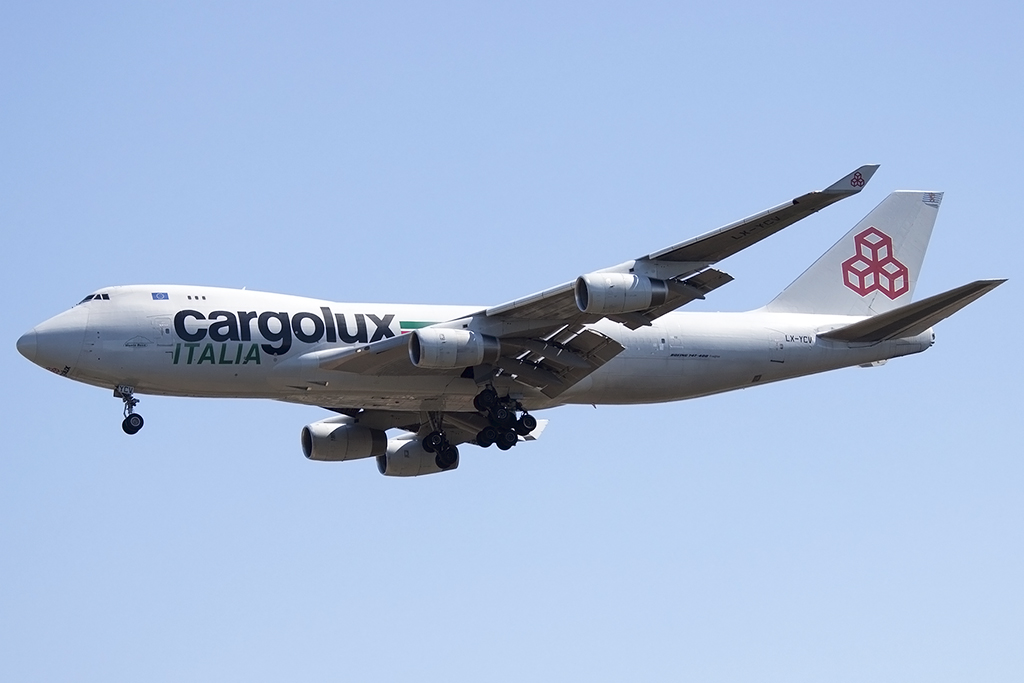 LX-YCV, Boeing 747-4R7F, von Cargolux Italia hat soeben vom Flughafen Findel abgehoben und fliegt im Steigflug über die Stadt Luxemburg hinweg. 19.08.2020 De Rond Hans und Jeanny