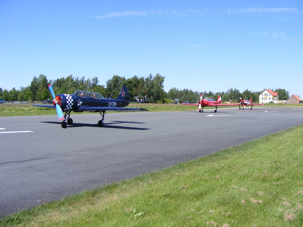 3 YAK 52 Startaufstellung LY-TIP,LY-BAL und LY-TOP zum Abflug im Verband vom Flugplatz Gera EDAJ 13.6.2009