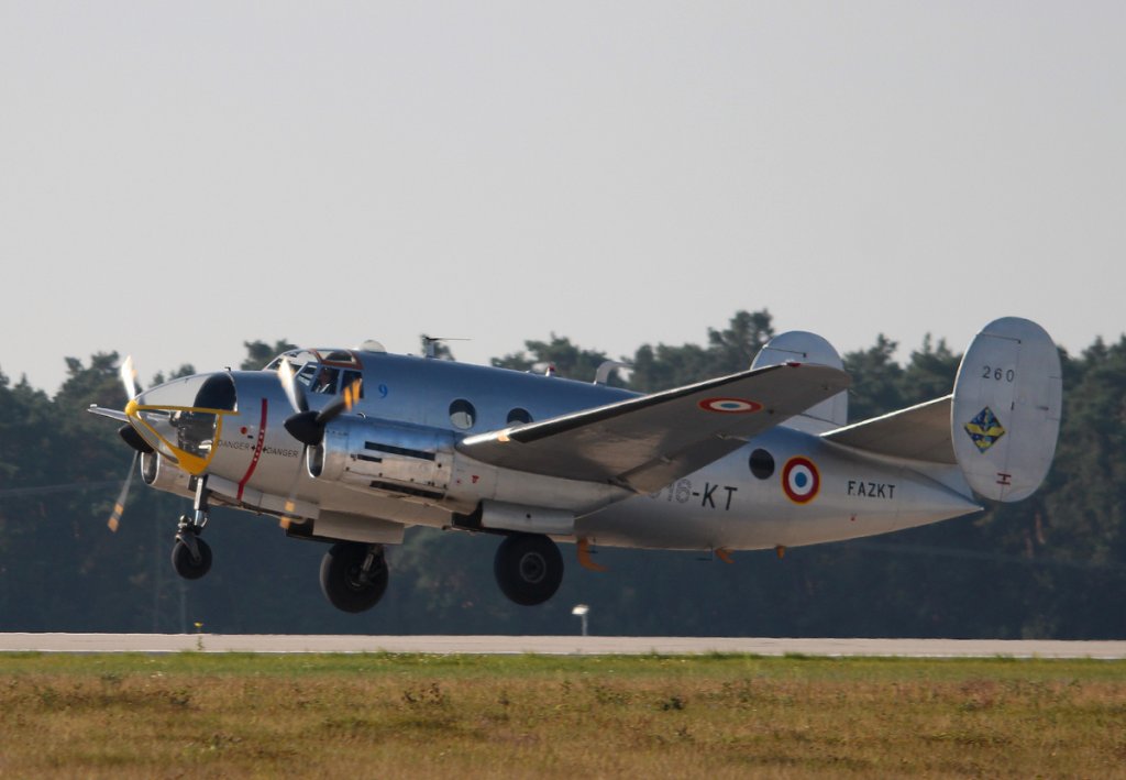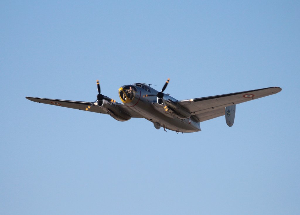 Dassault MD.311 Flamant F-AZKT beim Überflug während der Flugvorführung auf der ILA 2012 am 14.09.2012. Aus der Bugkanzel wird das Geschehen am Boden festgehalten.