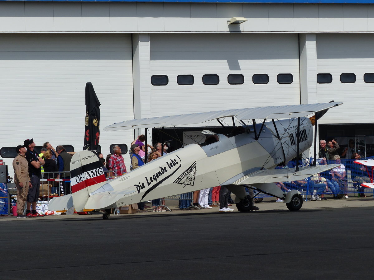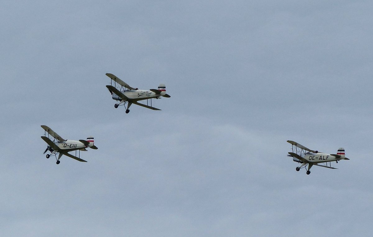 Bücker Bü 133 Jungmeister, D-EIII und die beiden Bücker Bü 131 Jungmann, OE-AMG und OE-ALF beim Wettbewerb der Vintage Aerobatic World Championship am 17.8.2019 in Gera (EDAJ) Mario Ulbricht