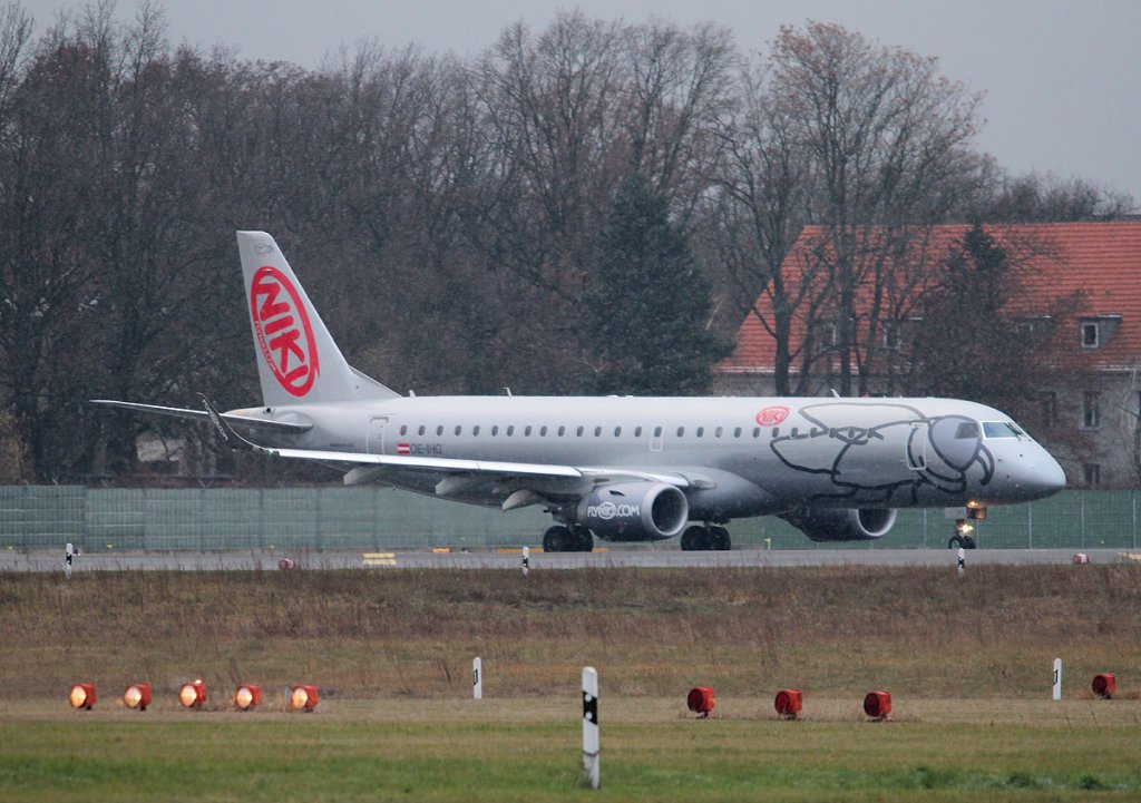 Fly Niki Embraer ERJ-190-100LR OE-IHG bei der Ankunft in Berlin-Tegel am 27.11.2011