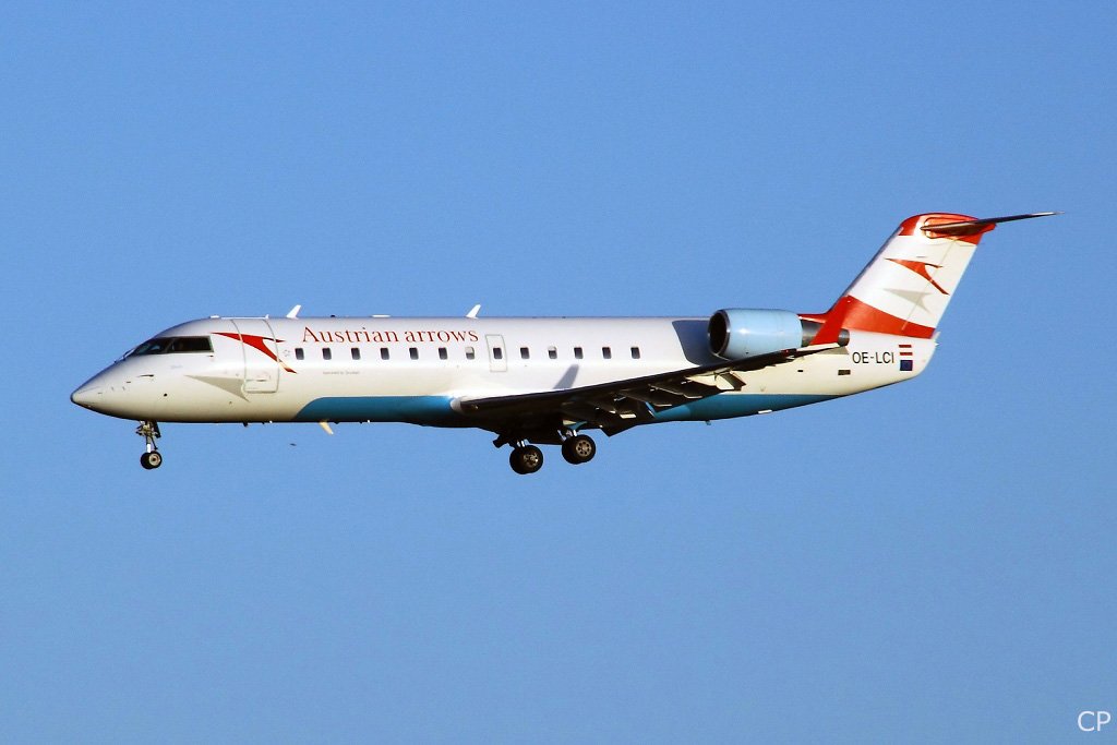 Als Flug OS 218 aus Leipzig-Halle landet die CRJ-200LR OE-LCI der Austrian Arrows in Dresden. Die von Tyrolian Airways betriebenen CRJ-200 sollen noch in diesem Jahr verkauft werden. (27.2.2010) Christopher Pätz