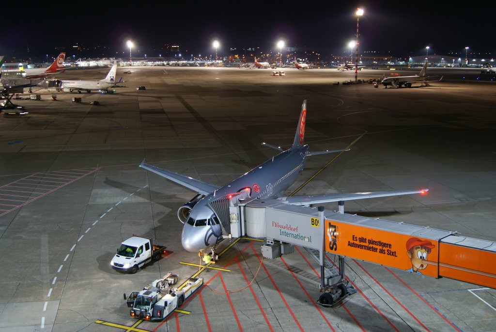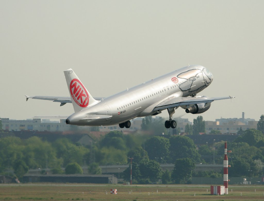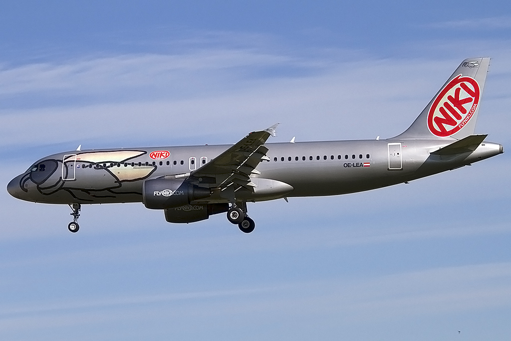 Ein rgelmäßiger Gast in Linz: Dieser Airbus A320-214 der Niki (OE-LEA, "Rock'n'Roll") landete aus Marburg und flog am darauffolgenden Morgen nach Nürnberg. Simon Prechtl