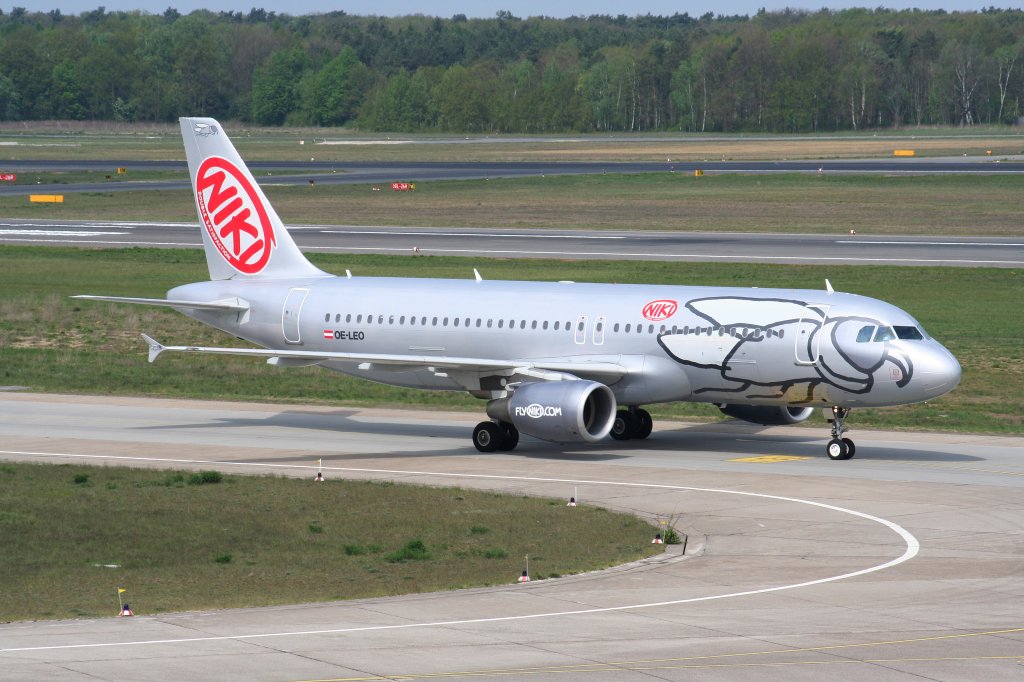 Fly Niki A 320-214 OE-LEO auf dem Weg zum Start in Berlin-Tegel am 02.08.2011