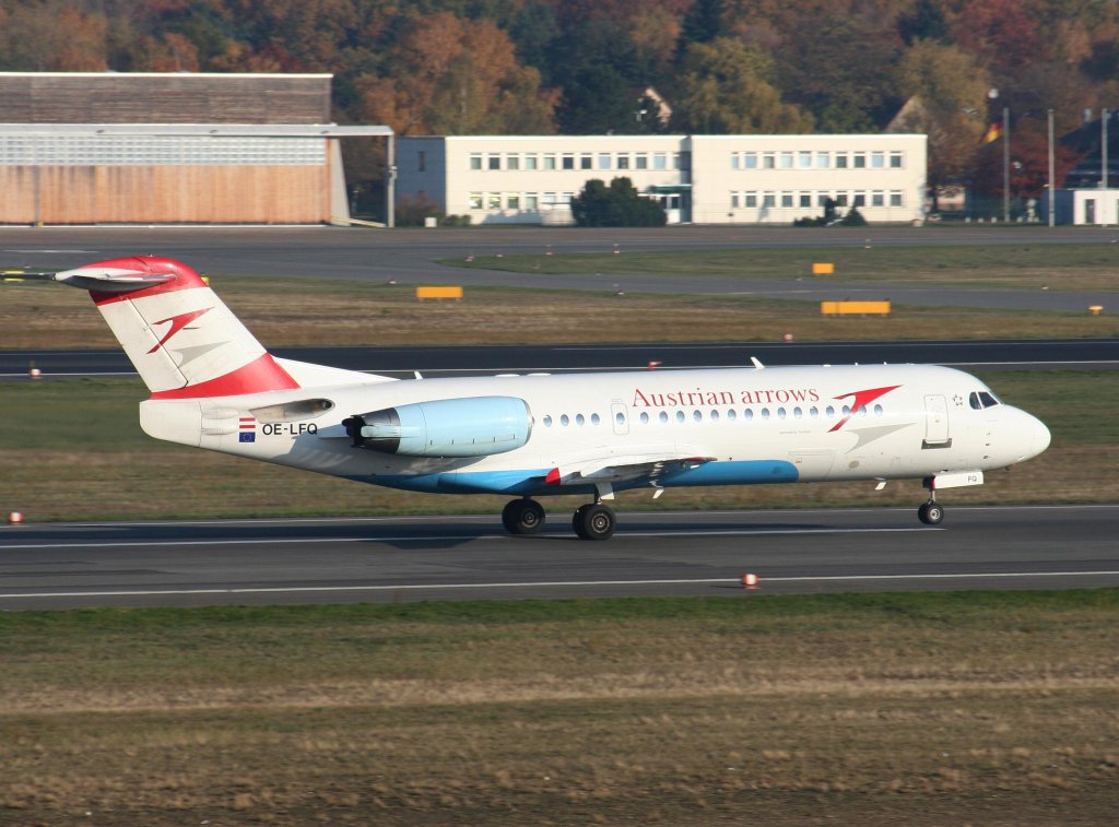 Austrian Arrows Fokker 70 OE-LFQ bei der Ankunft auf dem Flughafen Berlin-Tegel am 31.10.2009