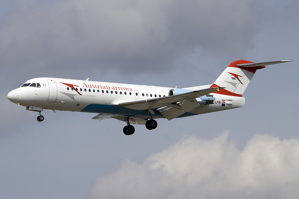Austrian Arrows Fokker 70 OE-LFR bei der Ankunft auf dem Flughafen Berlin-Tegel am 12.09.2009