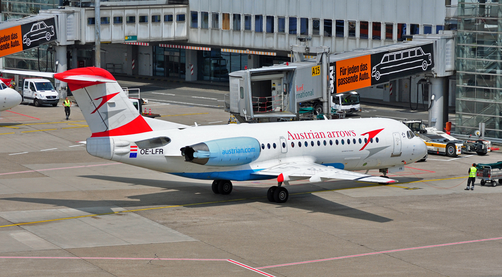 Fokker 70 der Austrian Arrow, OE-LFR, am "Gate" in Düsseldorf - 07.06.2010