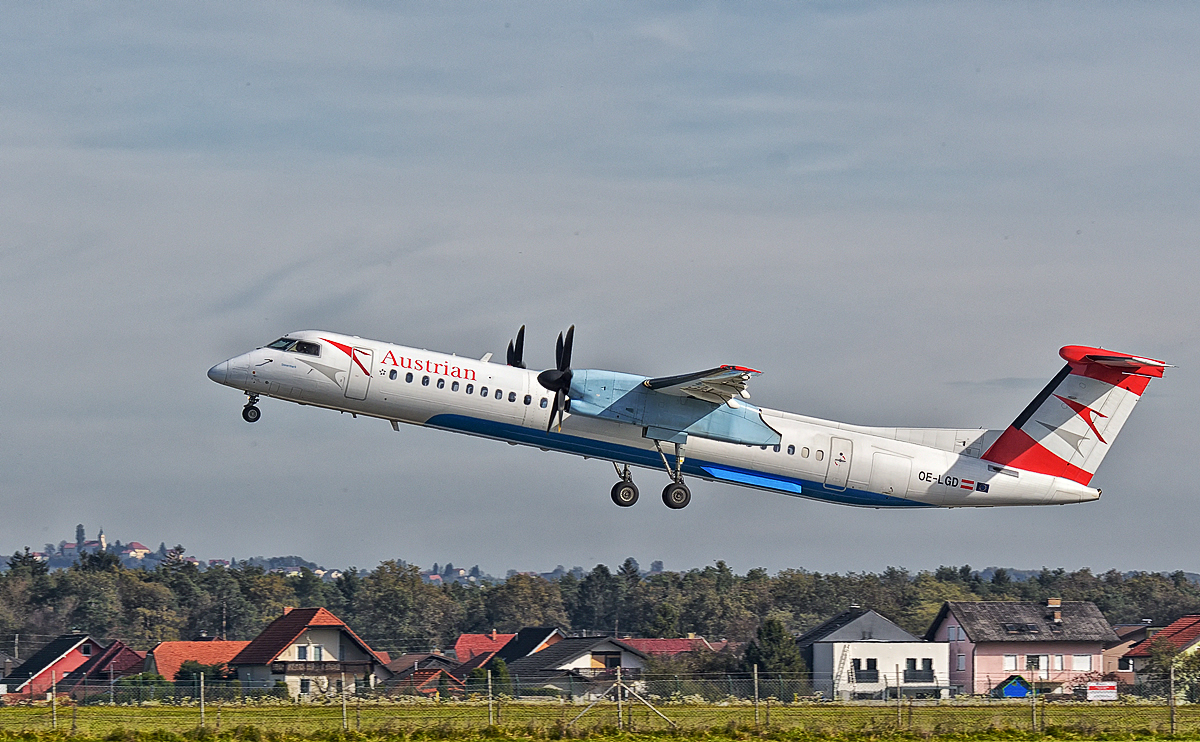 Austrian OE-LGD, Bombardier Dash8 bei Trainingsflug auf Maribor Flughafen MBX. /27.10.2017