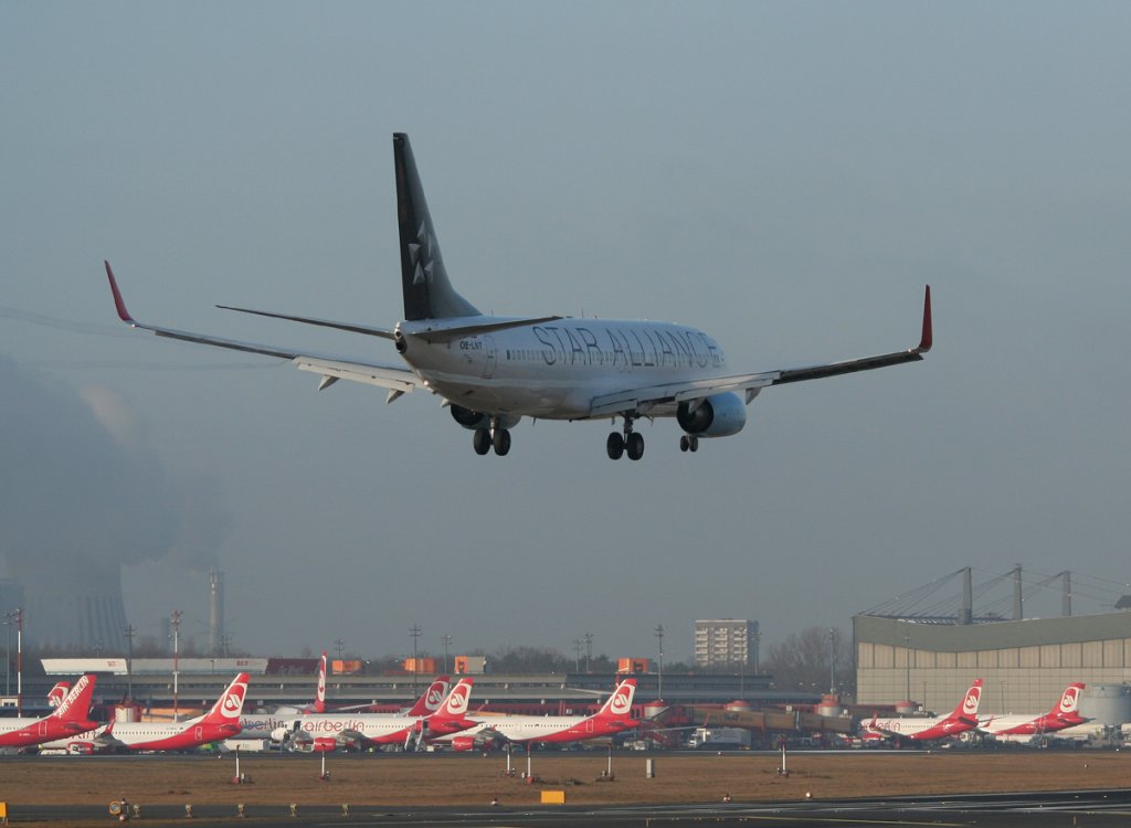 Austrian Airlines B 737-8Z9 OE-LNT kurz vor der Landung in Berlin-Tegel am 09.03.2012