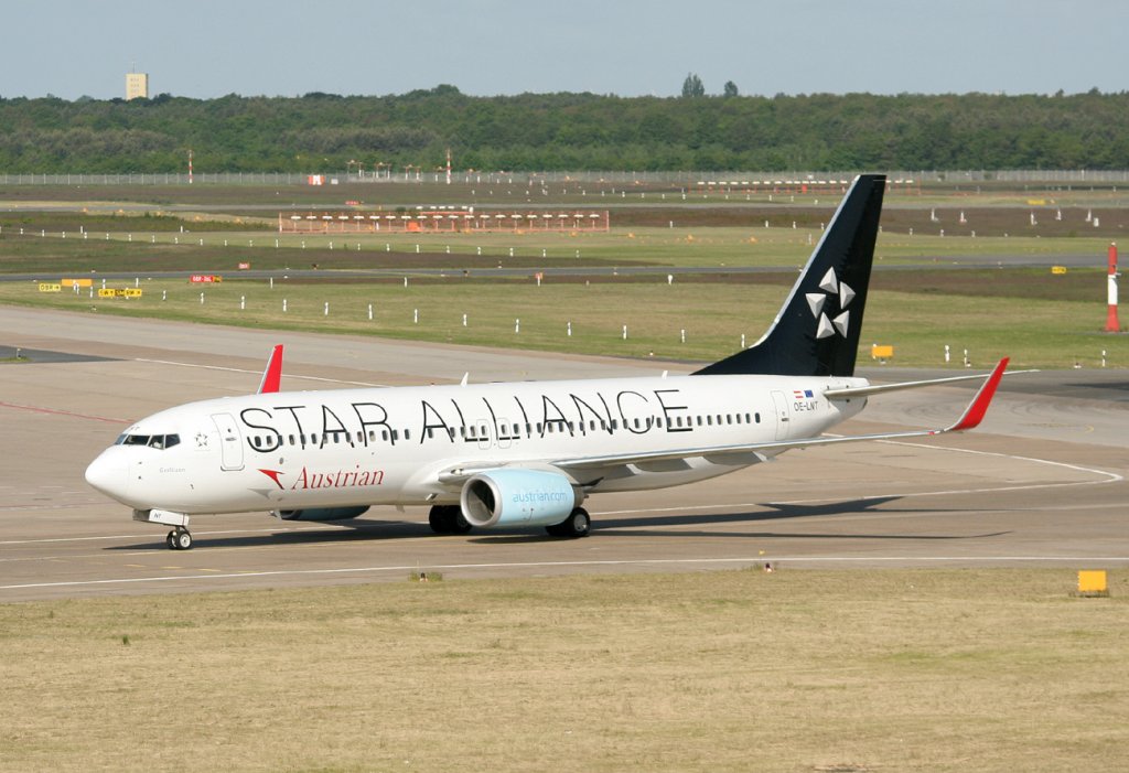 Austrian B 737-8Z9 OE-LNT in Star Alliance Bemalung nach der Landung in Berlin-Tegel am 04.09.2010