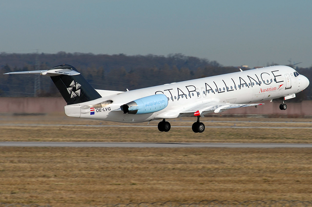 Austrian Airlines, OE-LVG, Fokker 100, 5.Juli 2015,  Krakow , AMS  Amsterdam, Netherlands. Star Alliance Bemalung.