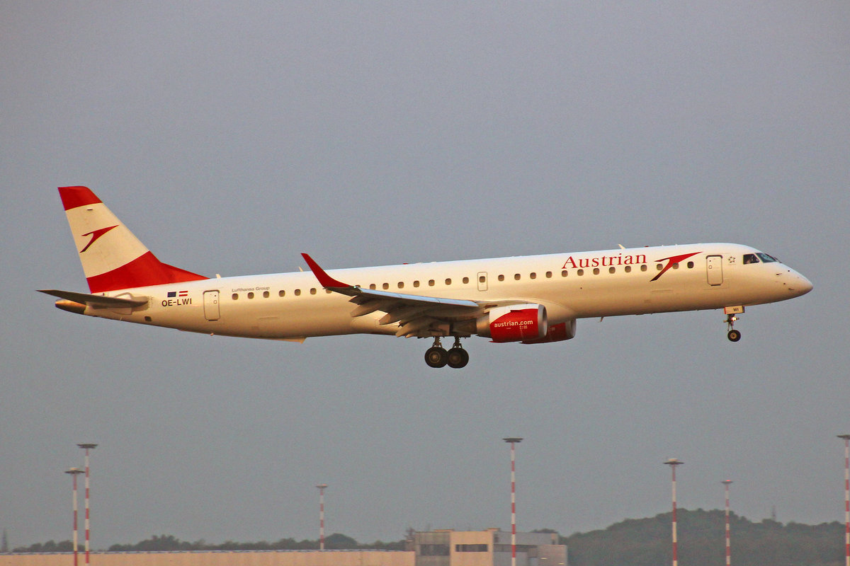 Austrian Airlines, OE-LWI, Embraer ERJ-195LR, msn: 19000500, 15.Oktober 2018, MXP Milano-Malpensa, Italy.