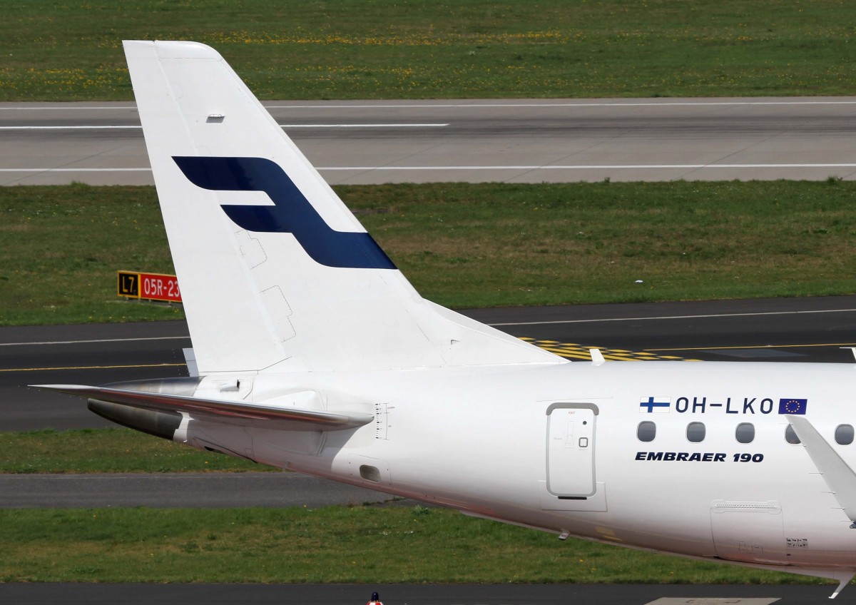 Finnair, OH-LKO, Embraer, 190 LR (Seitenleitwerk/Tail ~ neue Finnair-Lackierung), 02.04.2014, DUS-EDDL, Düsseldorf, Germany