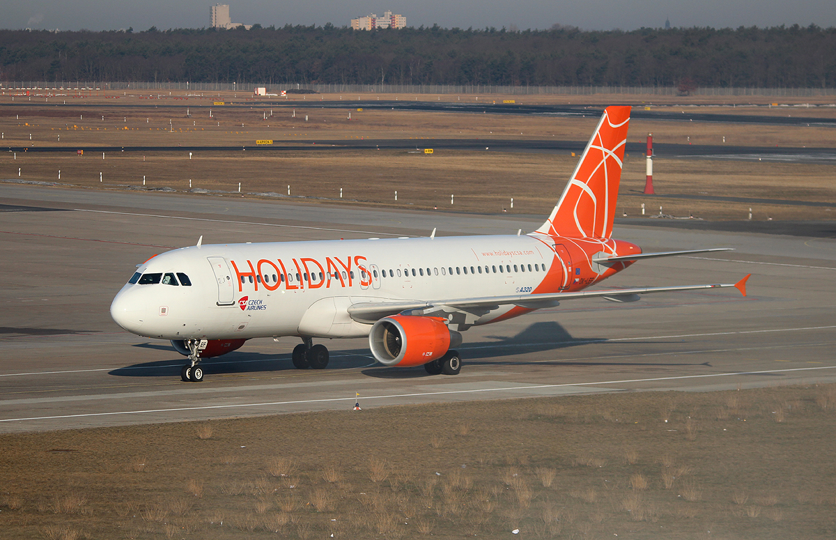 Holidays Czech Airlines A 320-214 OK-LEF bei der Ankunft in Berlin-Tegel am 07.04.2013