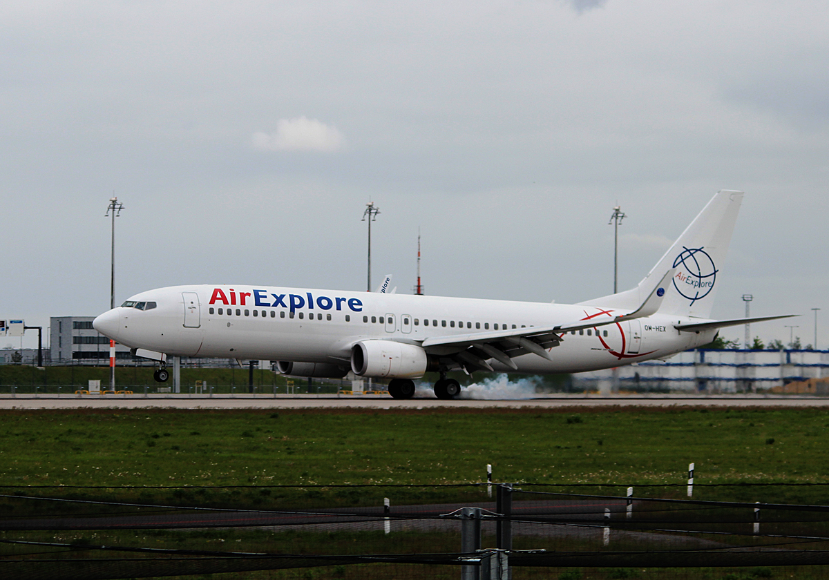 Air Explore B 737-81Q OM-HEX bei der Landung in Berlin-Schönefeld(BER) am 14.05.2015