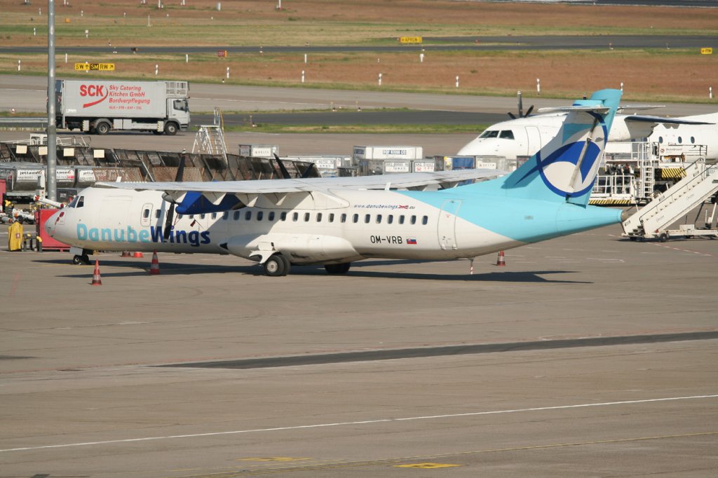 Danube Wings ATR-72-202 OM-VRB am 07.05.2011 auf dem Flughafen Berlin-Tegel. Im Hintergrund Germania A 319-112 D-ASTA.