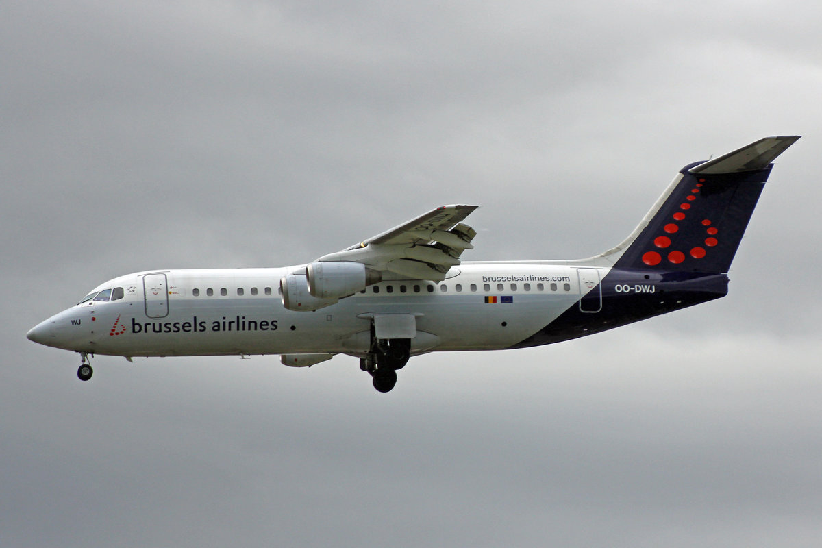 Brussels Airlines, OO-DWJ, BAe Avro RJ100, 01.Juli 2016, LHR London Heathrow, United Kingdom.