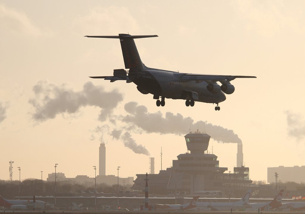 Brussels Airlines Avro Regjet RJ100 OO-DWK bei der Landung in Berlin-Tegel am 01.03.2013