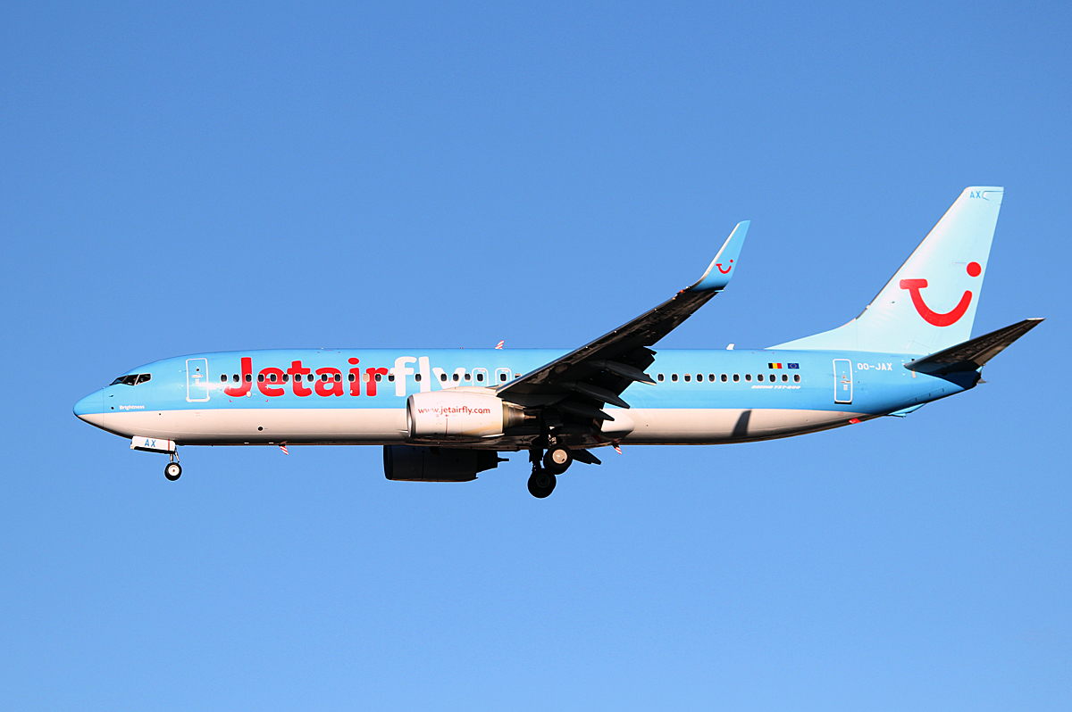 Jetairfly B 737-8K5 OO-JAX bei der Landung in Berlin-Tegel am 11.01.2014