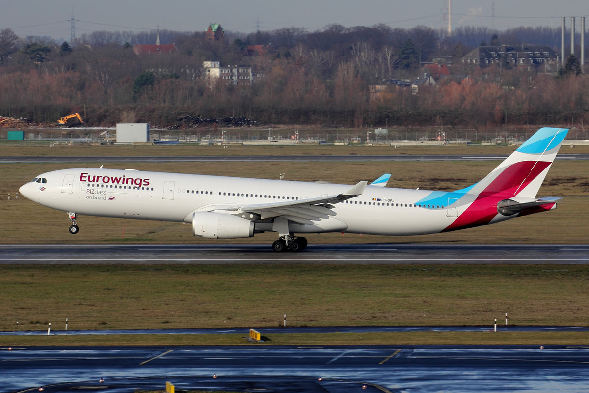 Eurowings Airbus A330-343 OO-SFJ beim Start in Düsseldorf 1.2.2019